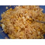 Нежный салат с тунцом, где в качестве заправки - сливочный сыр. Смело можно отнести салат к полезному питанию, тонкий аромат хрена придает салату пикантность! Вкусно салат в классической подаче, нам понравился на природе - на обжаренных на углях булках.