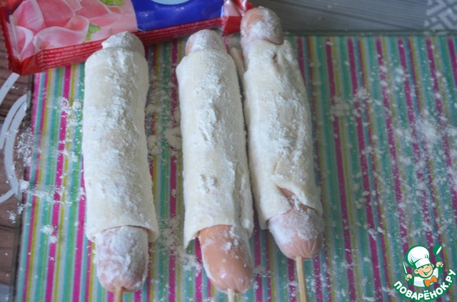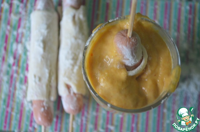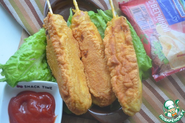 Затем сосиску на шпажке окунуть в стакан с тестом.