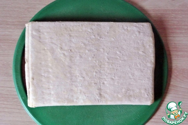 Достать слоеное тесто из морозильника и выложить на стол. У меня 2 пластины по 250 грамм.