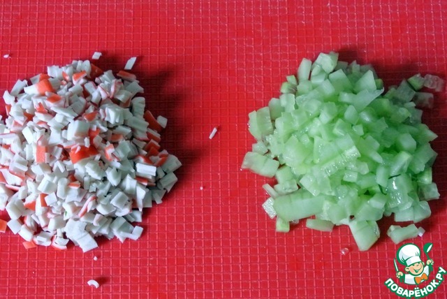 Яйца отварить, очистить, остудить. Мелко нарезать.