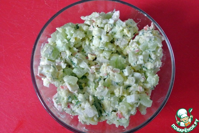 Посолить, поперчить. Перемешать и заправить майонезом.
