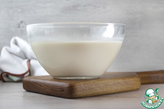 Приготовить тесто на блины. В чашке взбить яйцо с сахаром и солью, затем просеять муку, смешанную с разрыхлителем, влить горячее молоко, хорошо взбить. Дать постоять тесту около 30 минут.