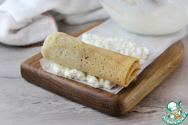 Вряд ли на свете найдется человек, который не любит блины, круглые, аппетитные и румяные! Я предлагаю вам рецепт необычных блинов - наоборот, в которых блины выступают в качестве начинки. Свернутый в рулет блин, облаченный в тонкий слой творога, запеченный в духовке, привлечет любого своим видом и ароматом. Вкусно и очень сытно!