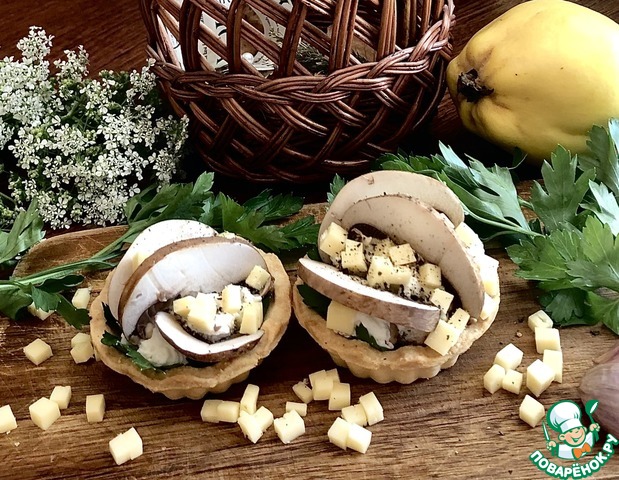 Рецепт «Тарталетки с зеленью, сыром и грибами»: