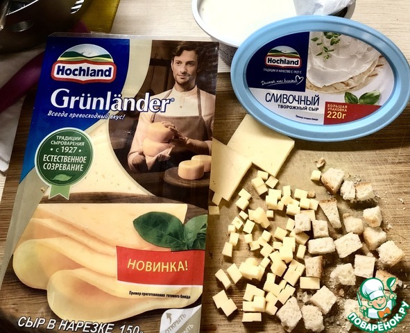 - Сыр полутвердый (у меня полутвердый сыр Грюнландер от Хохланд) — 20 г