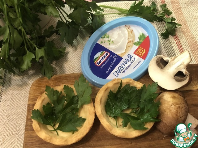 Ингредиенты для «Тарталетки с зеленью, сыром и грибами»: