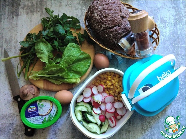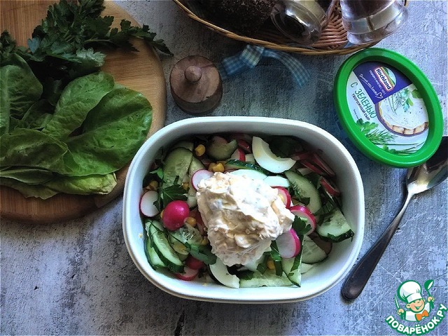 Ингредиенты для «Нежный салат с творожным сыром»: