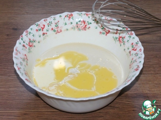 4. Тесто перемешать и влить охлажденное сливочное масло.