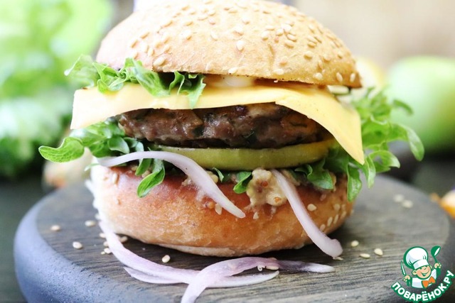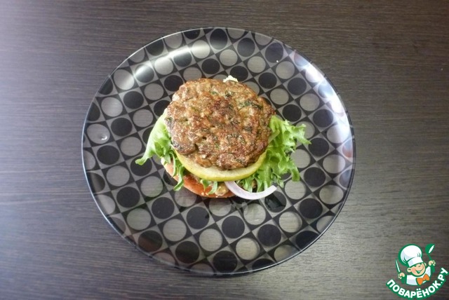 Рецепт «Бургер с печеночной котлетой и яблоком»: