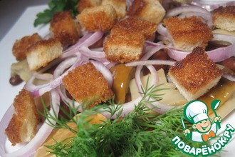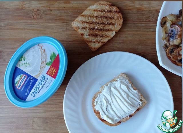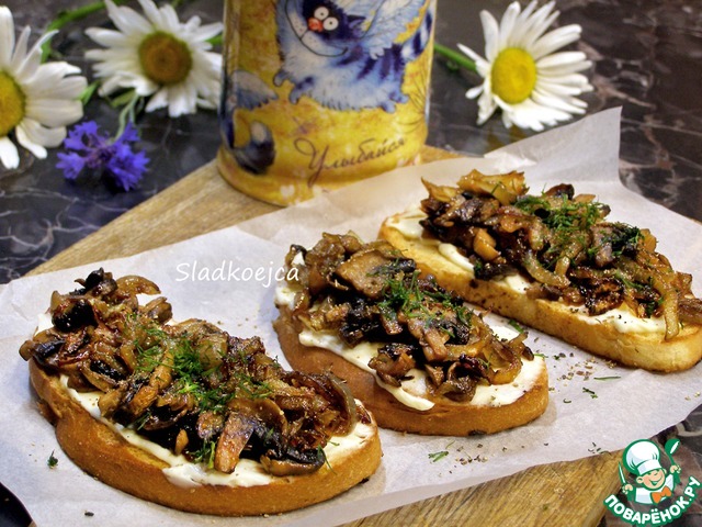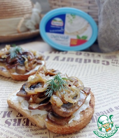 Рецепт «Брускетта с творожным сыром и шампиньонами»:
