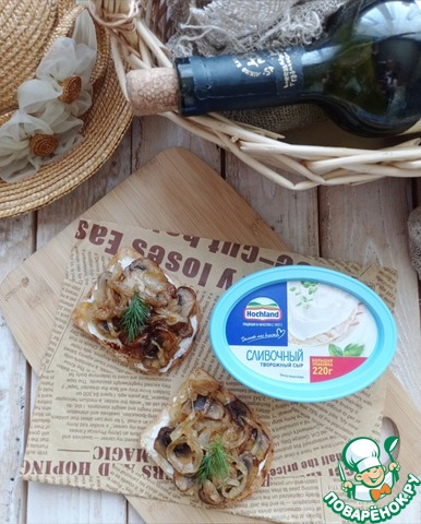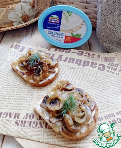 Брускетта с творожным сыром и шампиньонами