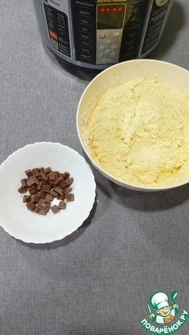 Творожный кекс с шоколадом - вкусный рецепт для мультиварки. Кекс с основой из творога, достаточно распространенный рецепт. Можно сказать где то даже классический. Но вот вариантов наполнения …. Достаточно много. Причем наш рецепт сегодня не самый калорийный. Многие отправляют в кекс целую плитку шоколада... а кто-то даже две (ох уж эти сладкоежки). Сегодня в наши пошаговые рецепты в мультиварке отправится— Творожный кекс с шоколадом. Гликемический индекс — Высокий, Калорийность — 359 ккал/100гр (Высокая) Данный рецепт можете использовать в любой мультиварке (я использовал мультиварку Redmond RMC-M40S 700W)
