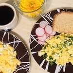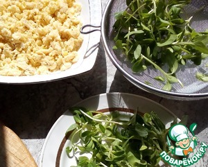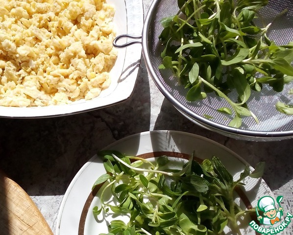 Яичница-болтунья с диетическим творогом и пророщенными семенами подсолнечника - вкусное и питательное блюдо, к тому же малозатратное по времени приготовления.