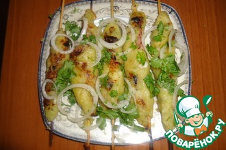 Молодая картошка замаринованная в смеси йогурта и специй, запеченная в рукаве и поданная с легким овощным соусом станет украшением пикника и наверняка потеснит поднадоевший шашлык. Картошку можно приготовить дома и на природе лишь слегка подогреть на огне, а вот соус легко и просто приготовить непосредственно перед подачей.