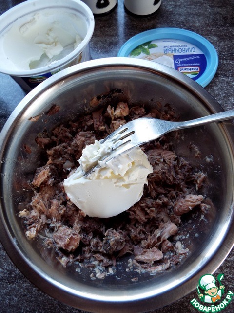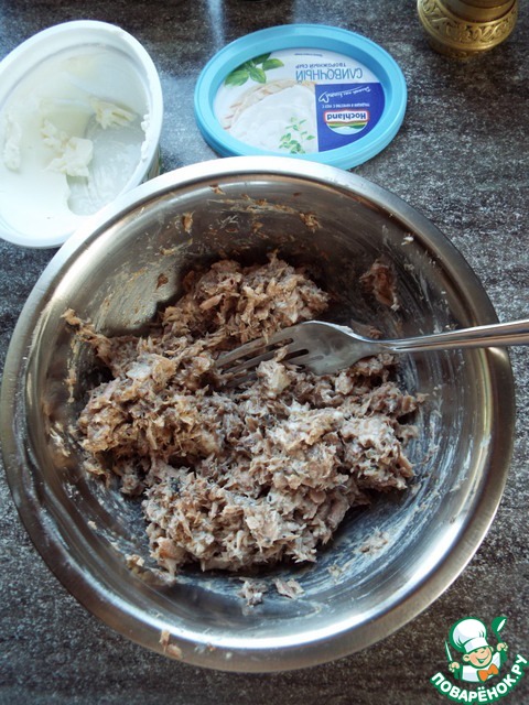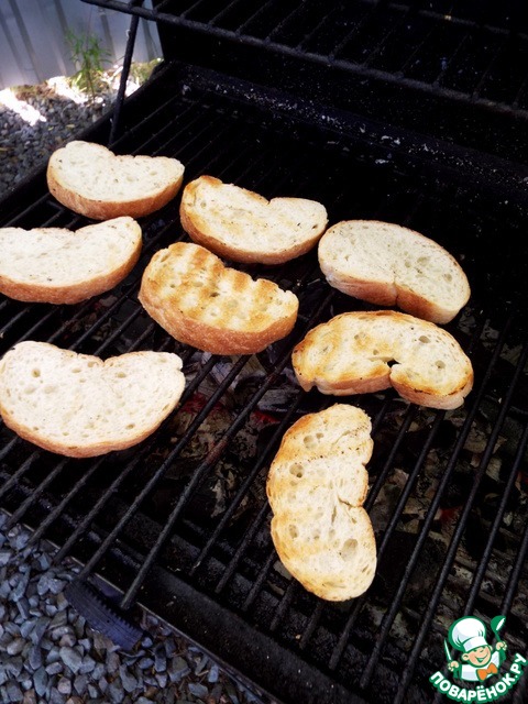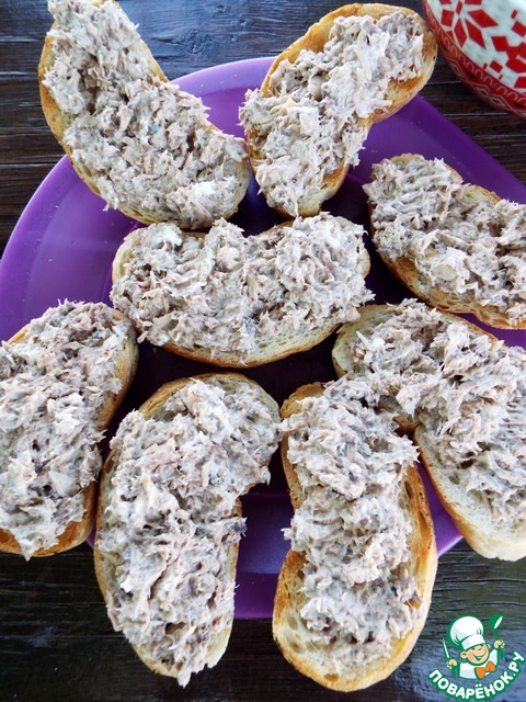 Рецепт «Брускетта с тунцом, сыром и луком»: