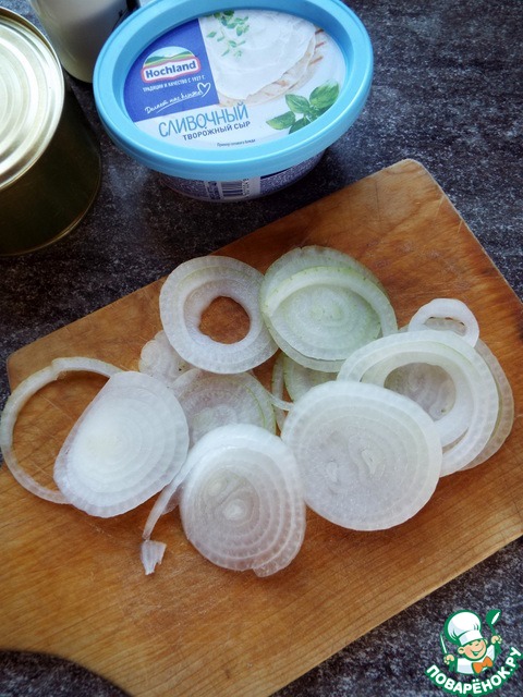 Ингредиенты для «Брускетта с тунцом, сыром и луком»: