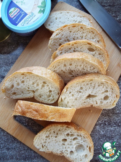 Для брускетты подойдет любой вкусный батон, багет или как у меня чиабатта.