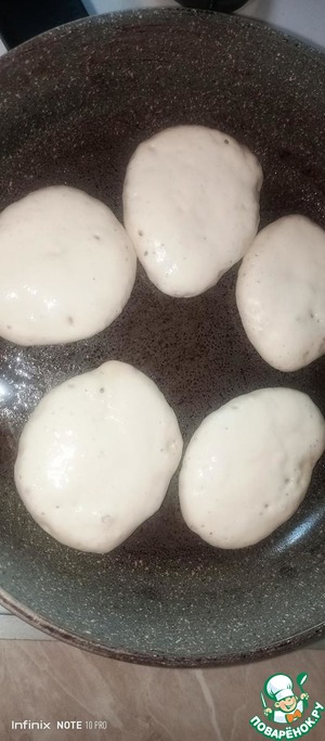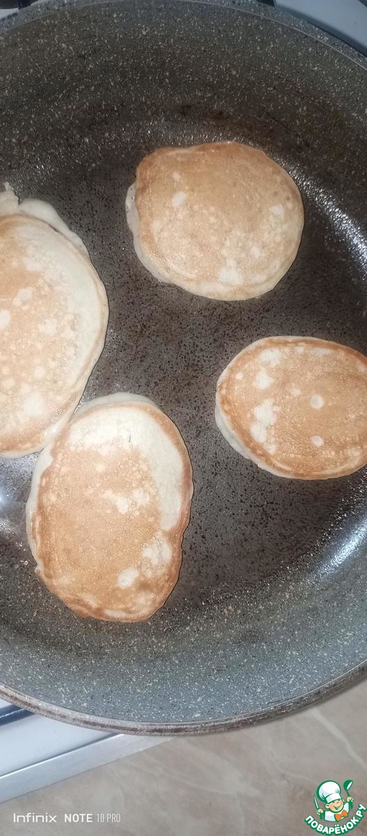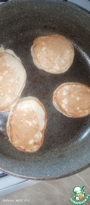 Жарить оладушки примерно 2 минуты, затем перевернуть на другую сторону.