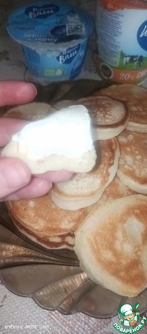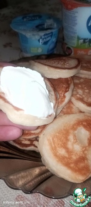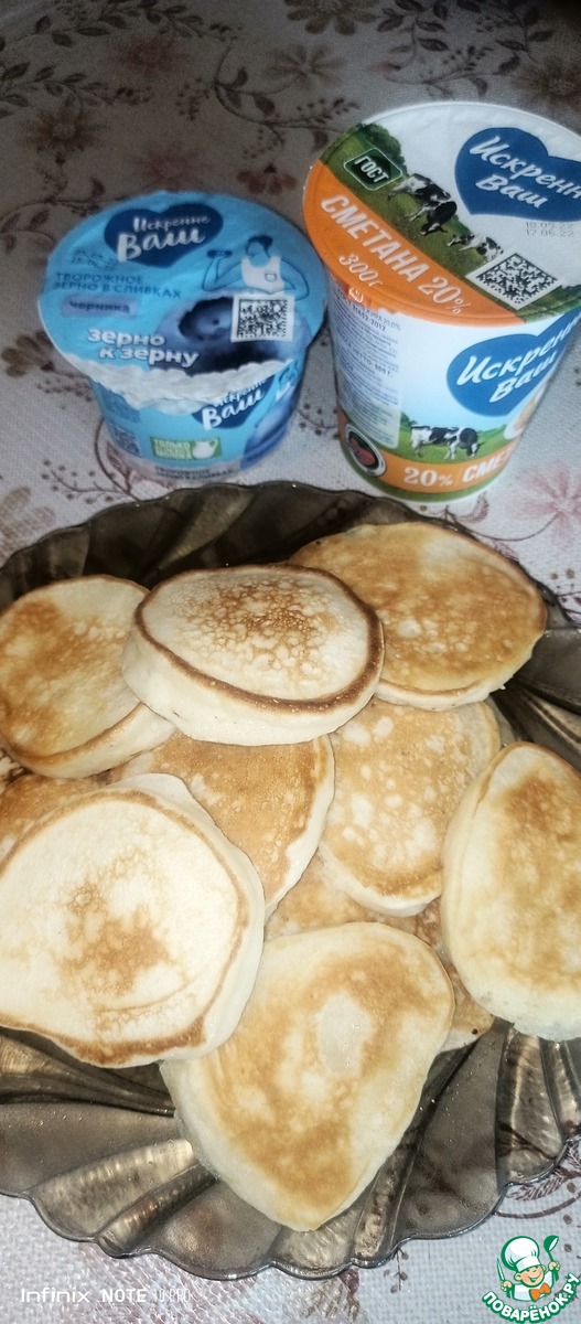 Подавать оладушки рекомендуется со сметаной ТМ "Искренне Ваш".