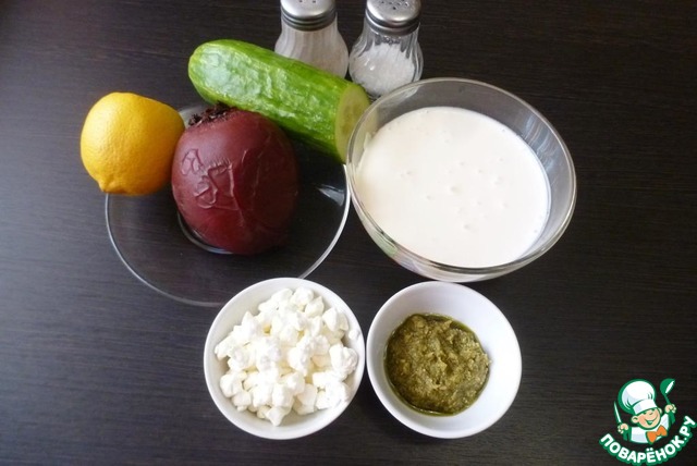 Ингредиенты для «Свекольный суп-пюре с творогом и песто»: