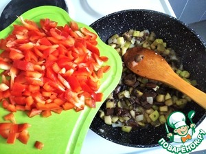 Изредка помешиваем, пока лишняя влага не испарится. Пока шампиньоны жарятся, подготовим овощи.