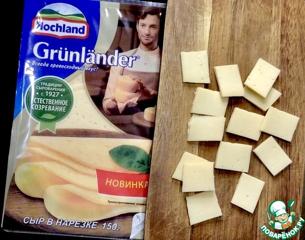 - Сыр полутвердый (у меня сыр полутвердый (Грюнландер ТМ "Hochland") 2 ломтика) — по вкусу