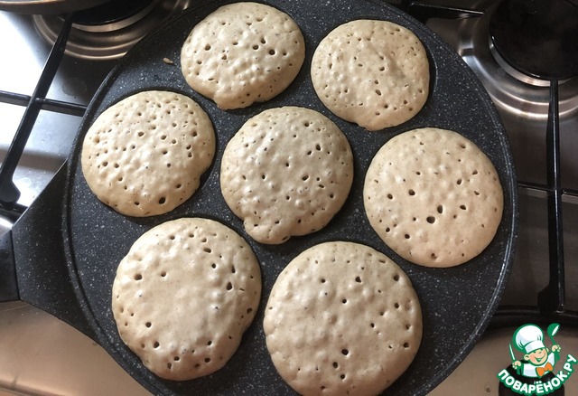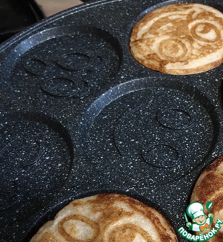 Печем оладушки. Удобно печь на спец. тефлоновой сковороде для оладьев. (у меня с рисунком веселых мордашек, см. фото ниже) -