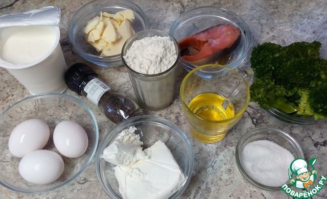 Ингредиенты для «Киш с копчёной горбушей, брокколи и творогом»: