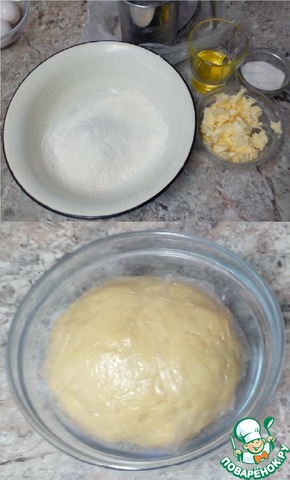 Охлаждённое масло порежьте кубиками, соедините с просеянной мукой, посолите, добавьте 3 ст. л. холодной воды и замесите тесто. Скатайте тесто в шар, заверните в плёнку, положите в холодильник и дайте ему постоять 1 час.