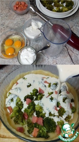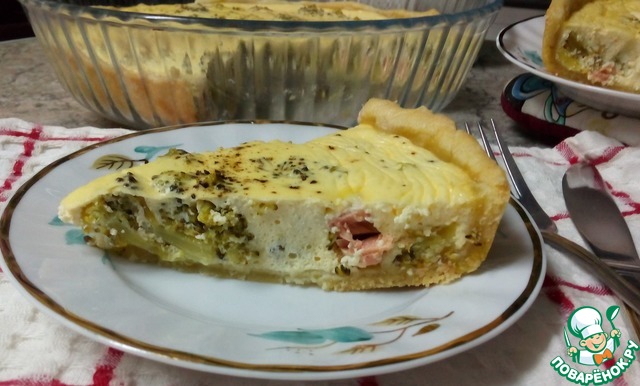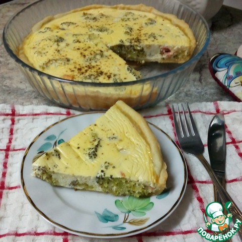 Рецепт «Киш с копчёной горбушей, брокколи и творогом»: