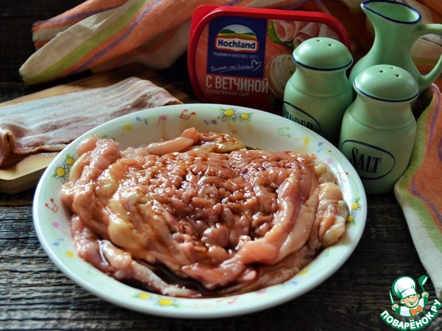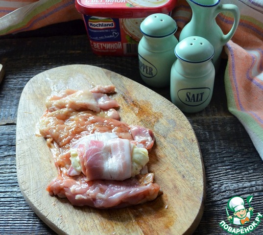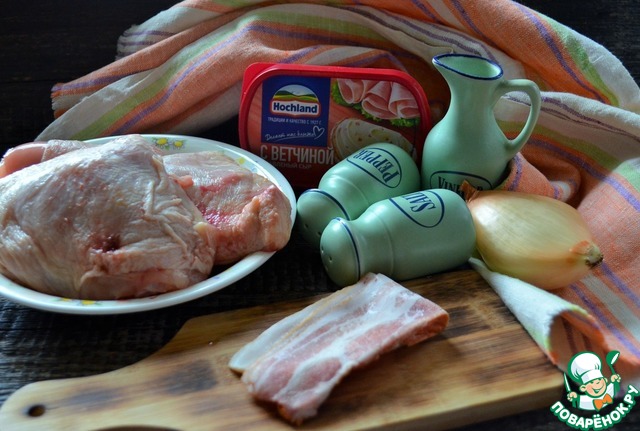 Ингредиенты для «Куриные бедра с сыром и беконом»: