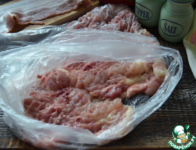 Мякоть бёдер отбить. Удобнее это сделать в пакете.