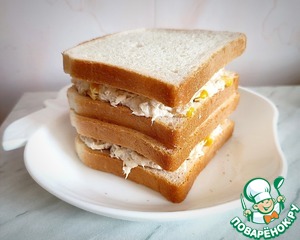 Рецепт «Сэндвич с курицей, плавленым сыром, кукурузой»: