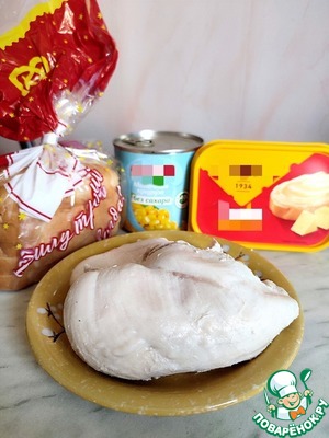 Ингредиенты для «Сэндвич с курицей, плавленым сыром, кукурузой»: