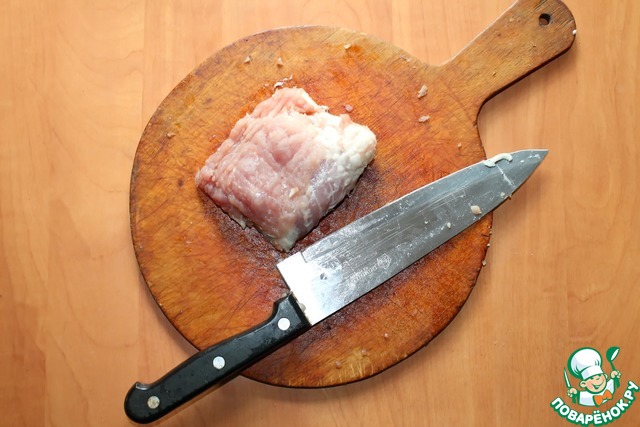 Для начала подготовим нужные ингредиенты. Лучше всего подойдет шея или корейка без кости. Мясо сполосните и обязательно обсушите.