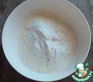 В миску просеять муку с разрыхлителем теста, добавить соль и сахар.