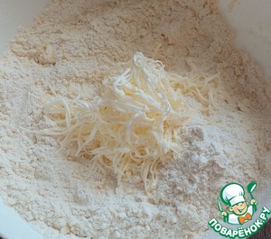 Сливочное масло натереть на тёрке, перетереть руками в крошку.