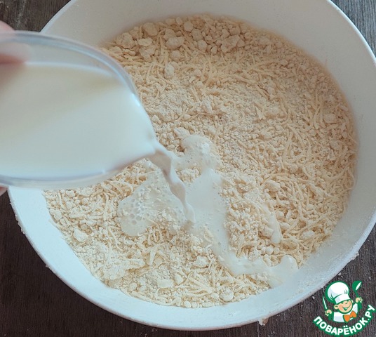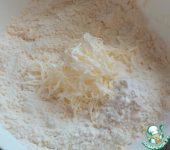 80 гр. сыра добавить в тесто, хорошо перемешать.