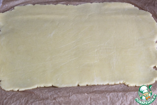 Выложить тесто вместе с пергаментом в форму, сделав бортики.