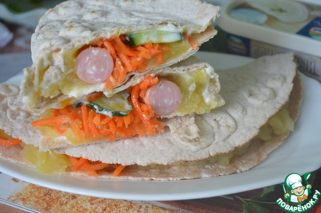 Лаваш с картофелем и сосиской