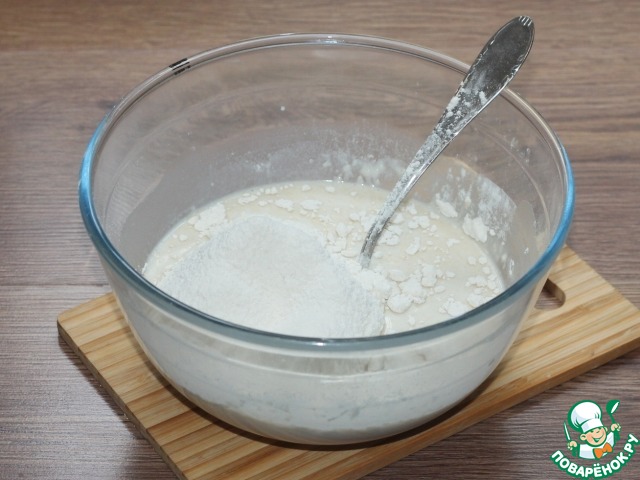 1. Приготовим опару. Муку (560 г) просеиваем.