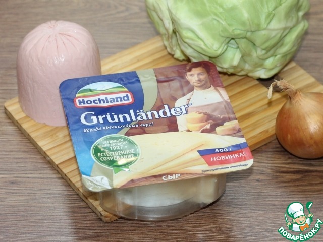 Ингредиенты для «Пирог-цветок с капустой, колбасой, сыром»: