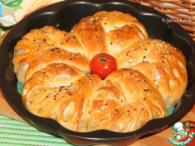 Рецепт «Пирог-цветок с капустой, колбасой, сыром»: