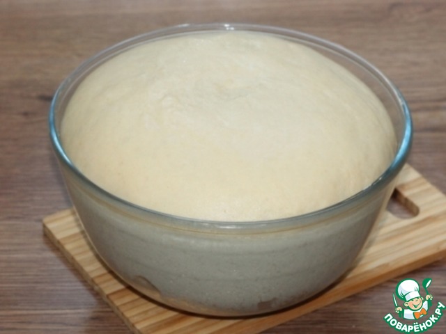 6. Ставим миску в теплое место для увеличения теста в 2,5 раза на 1,5 часа.