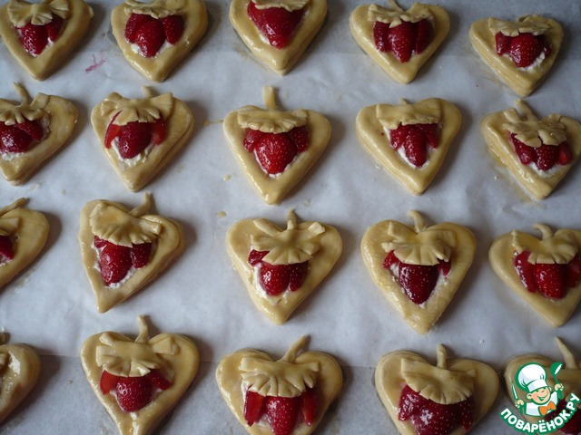 Рецепт «Слойки с творогом и клубникой»: