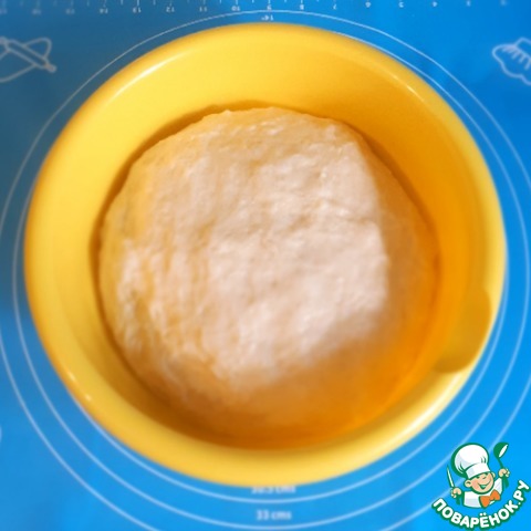 Замешанное тесто скатать в шар, положить в миску и поставить в теплое место для подъема. После того как тесто подойдет, сделать обминку и опять оставить его подходить.
