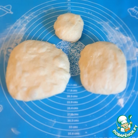 Тесто разделить на три части, для низа пирога примерно 500 гр. теста, для верха-300 гр., для украшения -150-200гр.