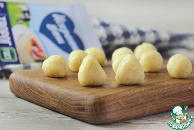 Тесто достать из холодильника и разделить на равные части массой 10-15 грамм. Из каждой части сформировать треугольное «туловище» «цыпленка».