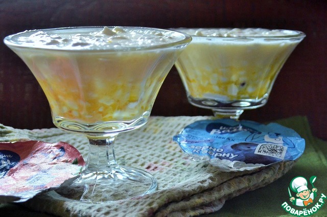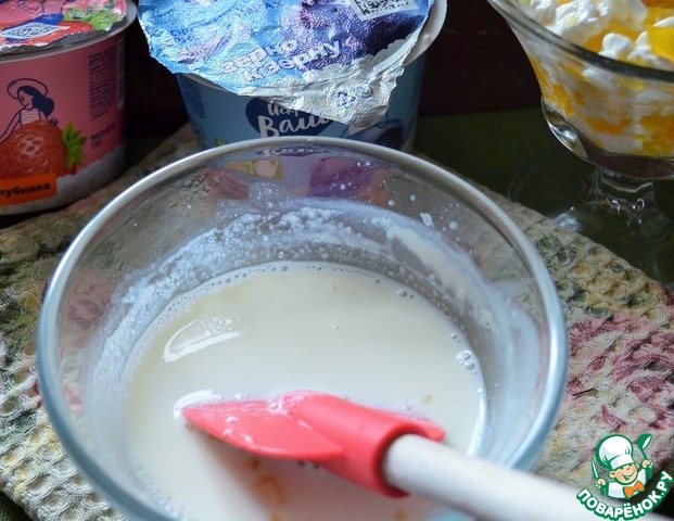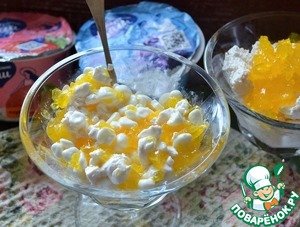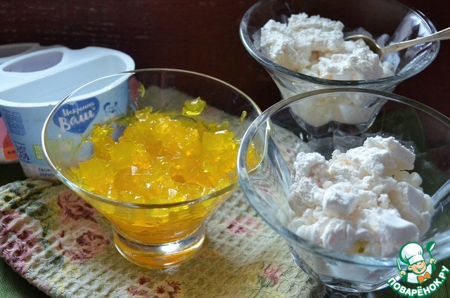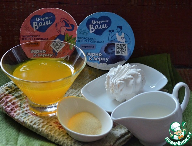 Ингредиенты для «Желейный десерт с зернёным творогом»:
