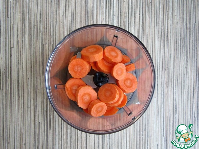 Морковь очистить, нарезать кружочками, измельчить в чаше блендера.